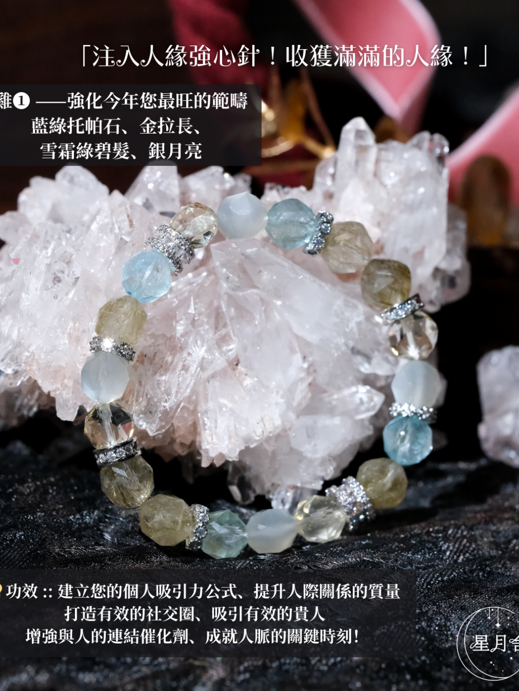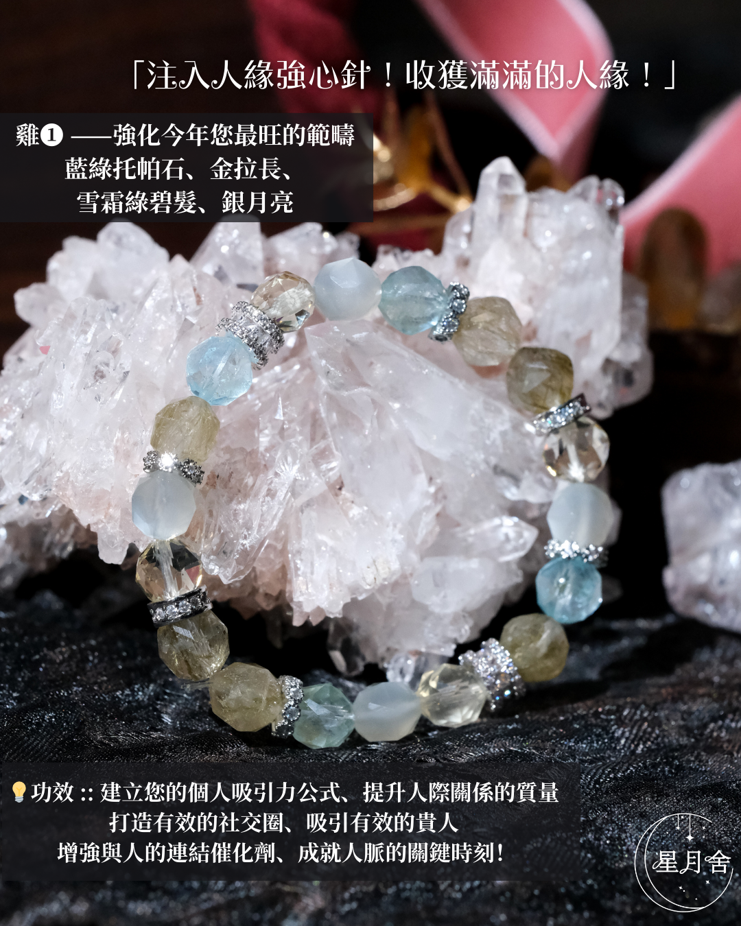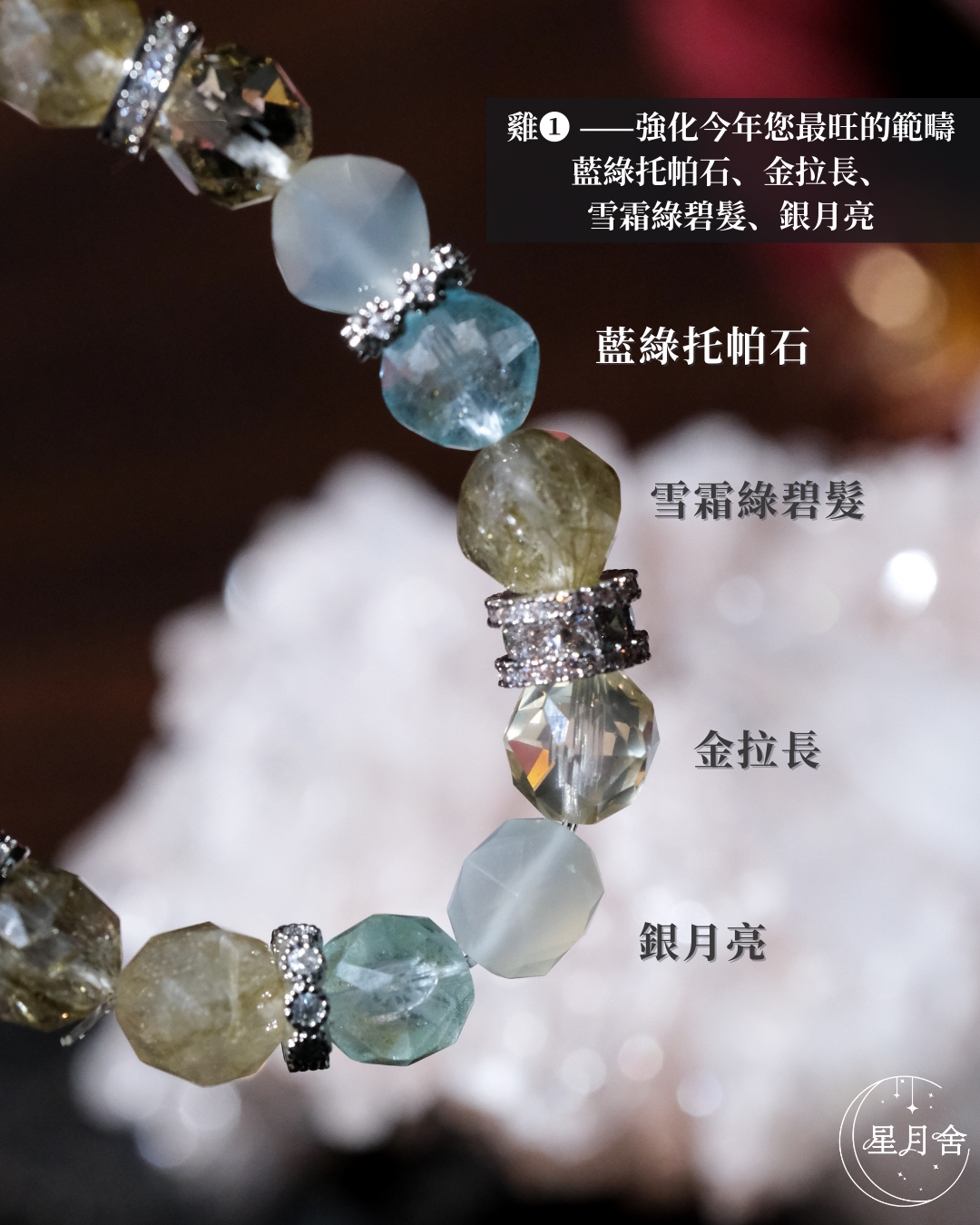 {藍綠托帕石、金拉長、雪霜綠碧髮、銀月亮}